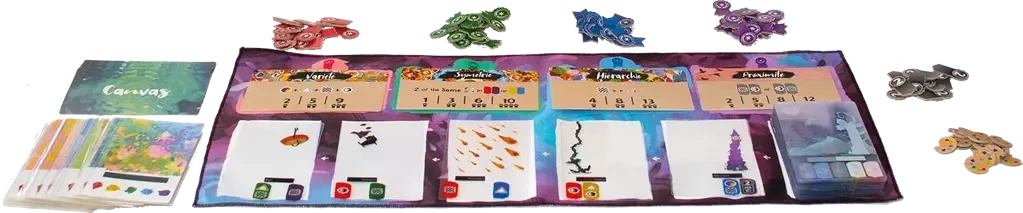 Dans Canvas, les joueurs incarnent des peintres participant à un concours d’art. Canvas, c’est un jeu absolument génial, beau et poétique, jouant sur des cartes transparentes.