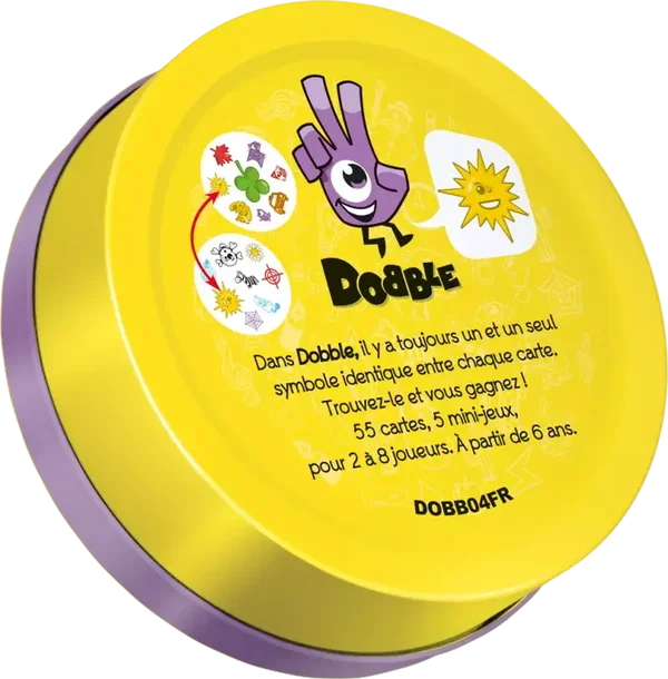 Dobble est un jeu d'observation et de rapidité où tous les joueurs jouent en même temps et essayent de retrouver les paires de symboles.