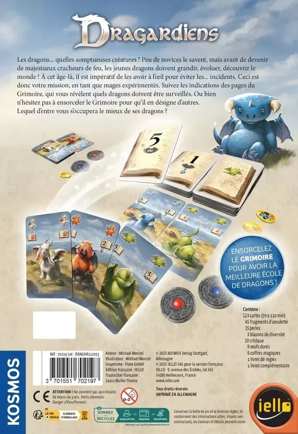 Dans Dragardiens, vous vous affrontez en tant que magiciens. Deux piles de cartes forment le « Livre magique », qui indique quels dragons et combien de dragons peuvent être rassemblés. A chaque carte prise, cette information change, mais heureusement vous pouvez lancer des sorts et remettre vos cartes dans le Livre Magique pour la changer en votre faveur et marquer !