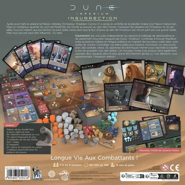 Dune Imperium : Insurrection est un jeu de plateau et de stratégie pour 1 à 4 joueurs ou 6 joueurs en 2 équipes. Ce jeu de société est une suite indépendante du jeu Dune Imperium qui vous propose de nouveaux défis et de nouvelles possibilités.