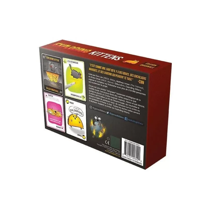 Exploding Kittens un jeu d'ambiance totalement déjanté ! Votre but : ne pas être le chat qui explose et réussir à faire exploser vos adversaires. Dès 7 ans.