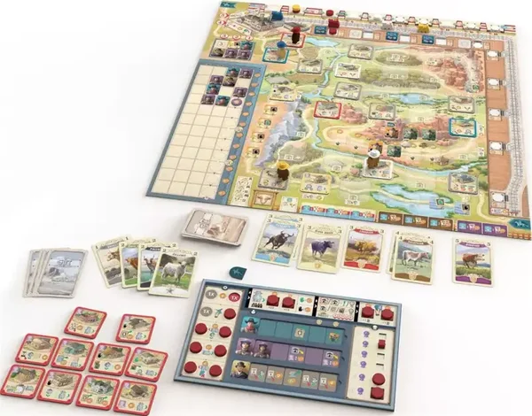 Procurez-vous les meilleures vaches et menez votre troupeau à la gare de Kansas City pour effectuer les livraisons les plus profitables?! Engagez des cowboys, des bâtisseurs et des ingénieurs ferroviaires pour mener à bien votre quête. Augmentez la taille de votre troupeau en trouvant les meilleurs bêtes. Construisez des bâtiments pour obtenir des actions plus variées. Étendez votre réseau ferroviaire pour atteindre les villes les plus éloignées. C'est le retour tant attendu du chef d'œuvre d'Alexandre Pfister, récompensé par de nombreux prix à travers le monde. Cette seconde édition inclut de nouveaux éléments et des variantes inédites, comme un mode solo à deux degrés de difficulté, du bétail qui grandit, 2 nouvelles tuiles bâtiments, etc
