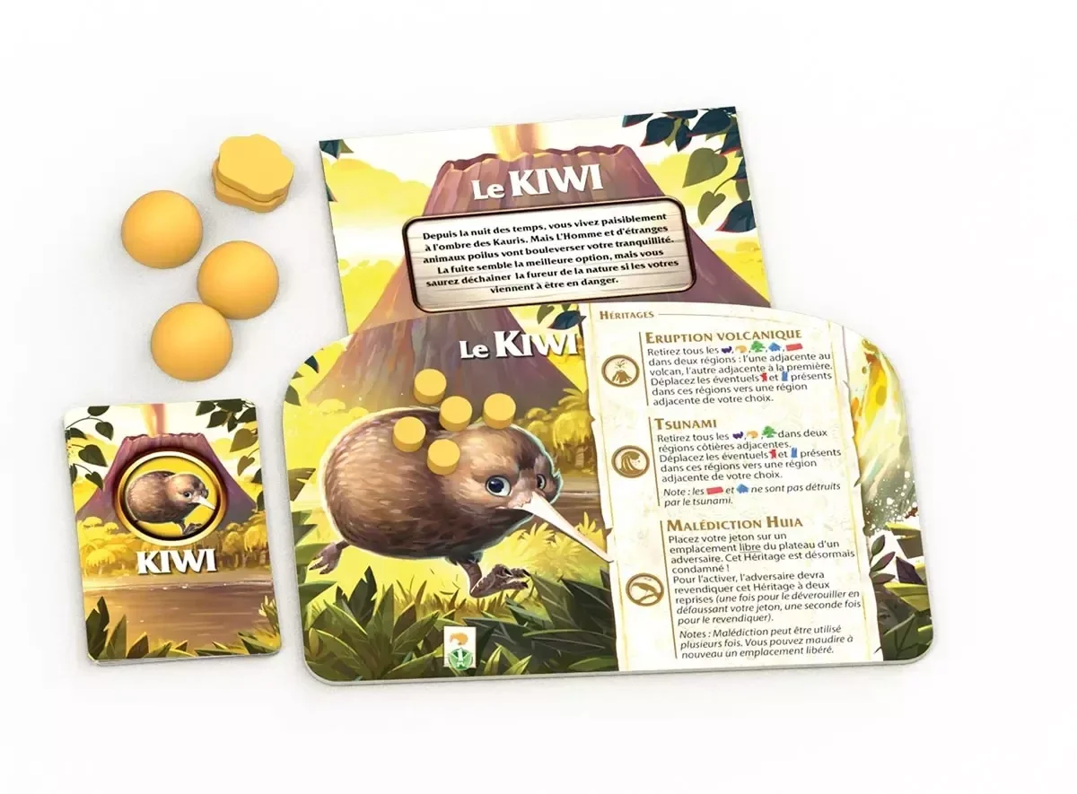Kauri est un jeu de stratégie et de plateau pour 2 à 4 joueurs. Dans ce jeu de société, vous jouez l'une des 4 factions (Les Anglais, Les Maories, Les Possums ou les Kiwis) et partez à la conquête des terres de Nouvelle-Zélande.