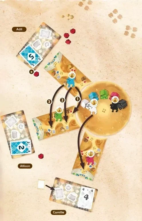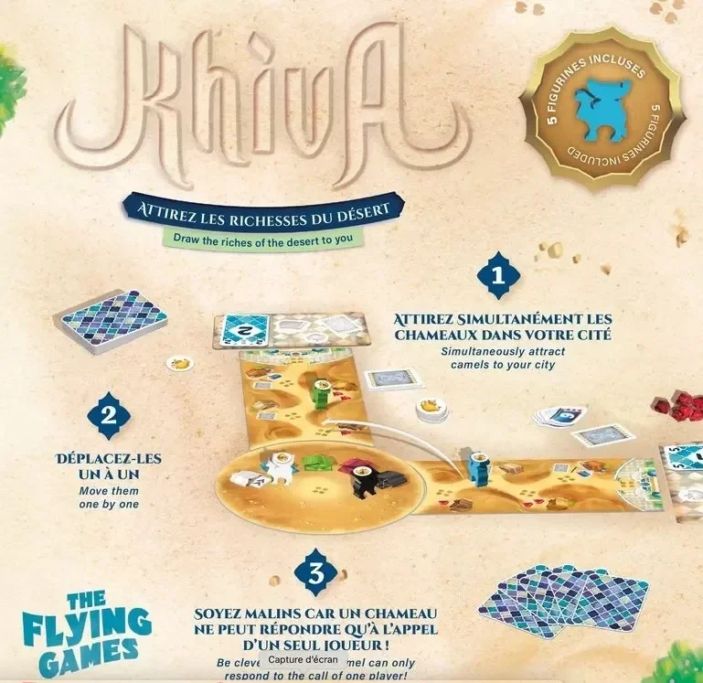 Khiva est un jeu de bluff et de déduction pour 2 à 5 joueurs. Dans ce jeu de société, vous incarnez un marchand et vous essayez d’attirer les plus riches caravanes grâce à un système dont les sensations rappellent le tir à la corde.