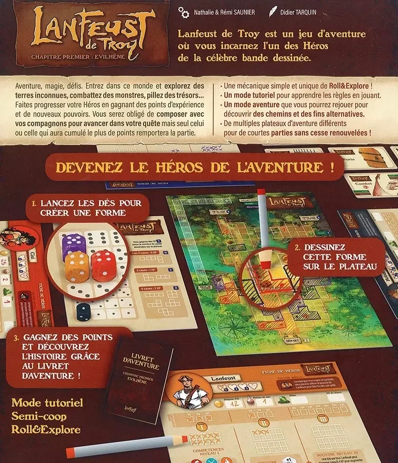 Lanfeust de Troy est un jeu de dés et d'exploration pour 2 à 4 joueurs. Dans ce jeu de société de type Roll & Write, vous incarnez l'un des héros de la célèbre bande dessinée.