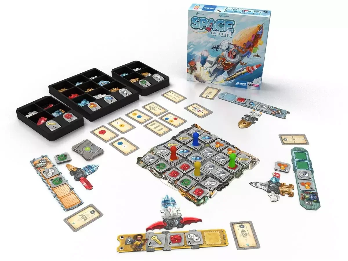 Dans le jeu de société "Spacecraft", vous allez devoir récupérer des débris pour acheter et construire des modules de fusée, que vous allez ensuite assembler de A à Z pour créer votre propre engin spatial. Mais attention, vous n'êtes pas seul dans la course à la conquête de l'espace ! Le premier joueur qui parvient à construire une fusée fonctionnelle déclenche le compte à rebours de fin de partie ! 3, 2, 1… Allumage des réacteurs, Décollage !