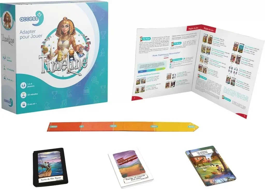La taille des cartes a été augmentée pour en faciliter la manipulation, les évènements ont été soigneusement sélectionnés pour les rendre accessibles au plus grand nombre, et un paquet de cartes Expériences personnelles a été créé spécialement pour la version Access+ : grâce à celui-ci, les joueurs peuvent se remémorer les évènements de leur propre vie.