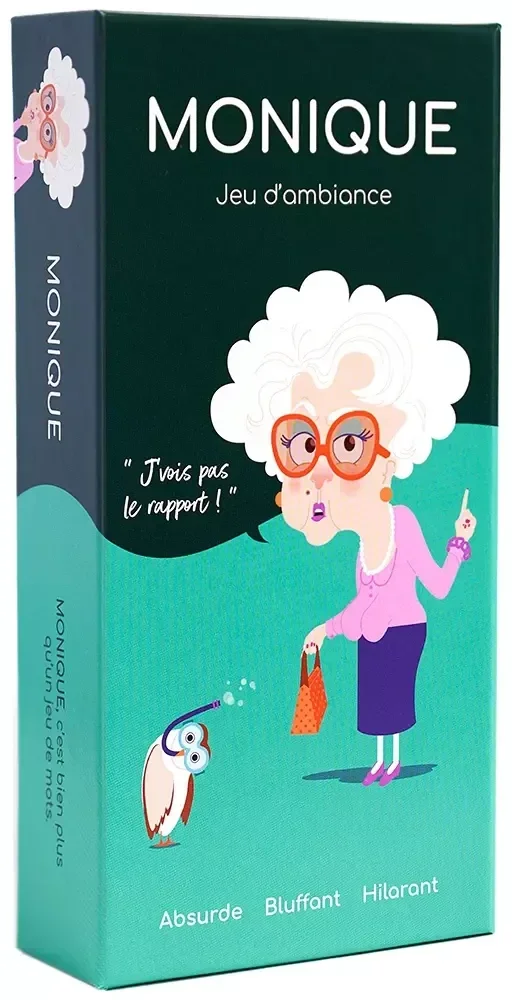 Monique est un jeu d'ambiance absurde d'associations de mots qui vous promet de passer des soirées délirantes !